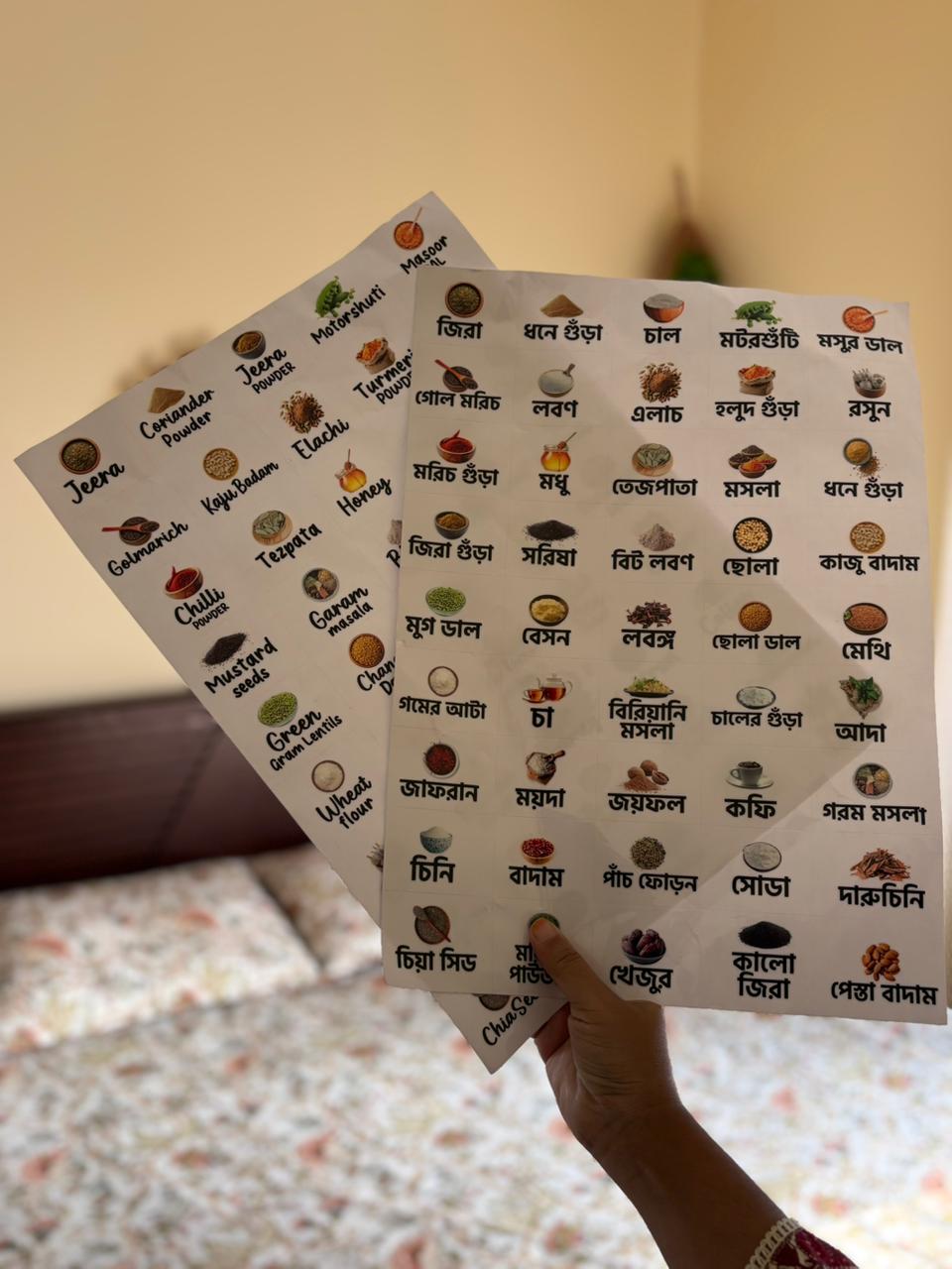 (Combo Bangla+English)- Premium Permanent Kitchen Label Sticker