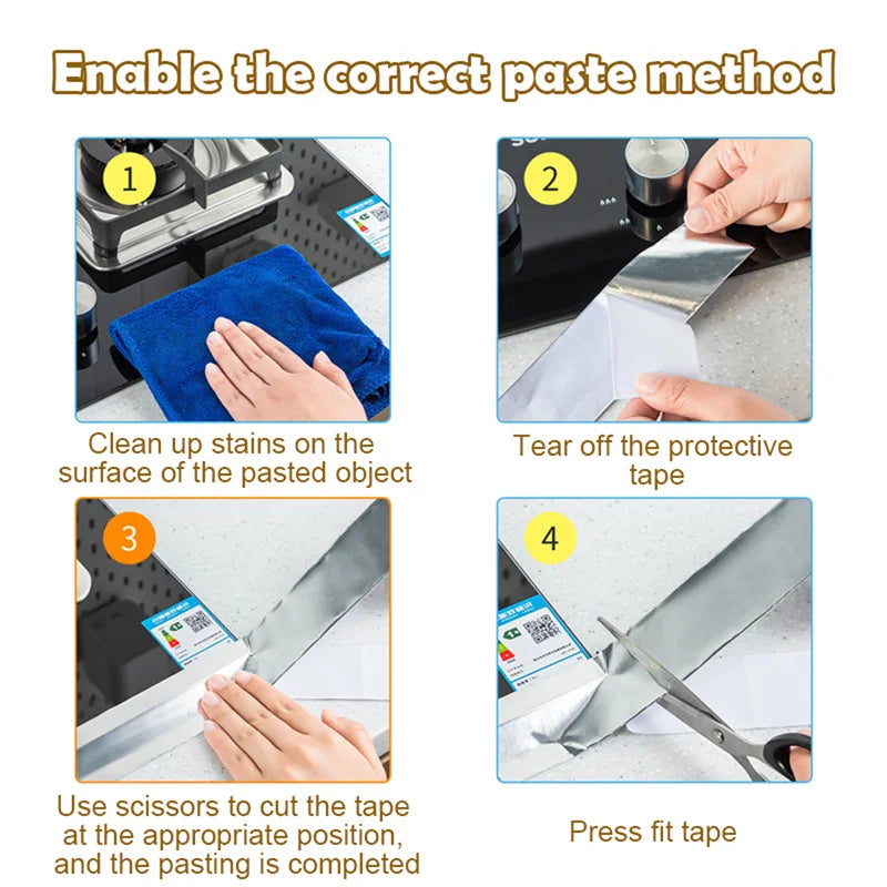 ১. প্রয়োজন অনুযায়ী টেপ কেটে সিঙ্ক বা কাউন্টারটপে লাগান।