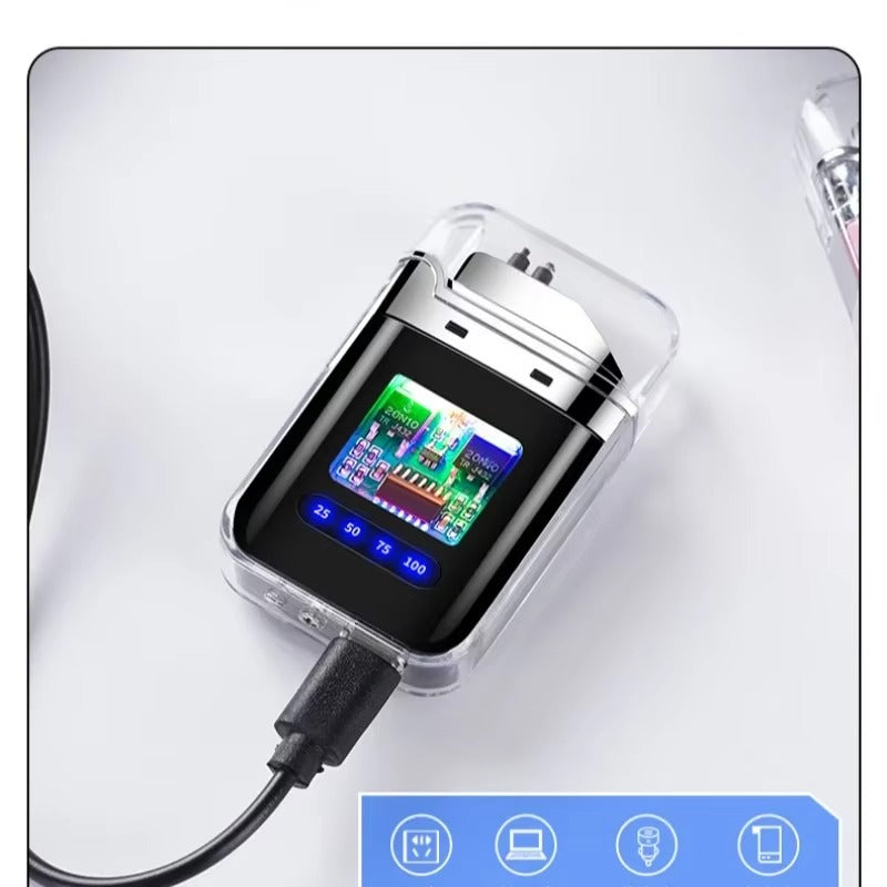 এই লাইটারটি একটি আধুনিক এবং পরিবেশবান্ধব সমাধান। এটি ঐতিহ্যবাহী গ্যাসের পরিবর্তে ডুয়াল ইলেকট্রিক আর্ক (Dual Electric Arc) ব্যবহার করে যা শক্তিশালী, বায়ু-প্রতিরোধী (windproof) এবং শিখাবিহীন (flameless) ভাবে মুহূর্তের মধ্যে আগুন জ্বালাতে সক্ষম। এর স্বচ্ছ শেল (Transparent Shell) এবং LED ব্যাটারি ইন্ডিকেটর এটিকে একটি স্মার্ট এবং আকর্ষণীয় গ্যাজেট করে তুলেছে।
